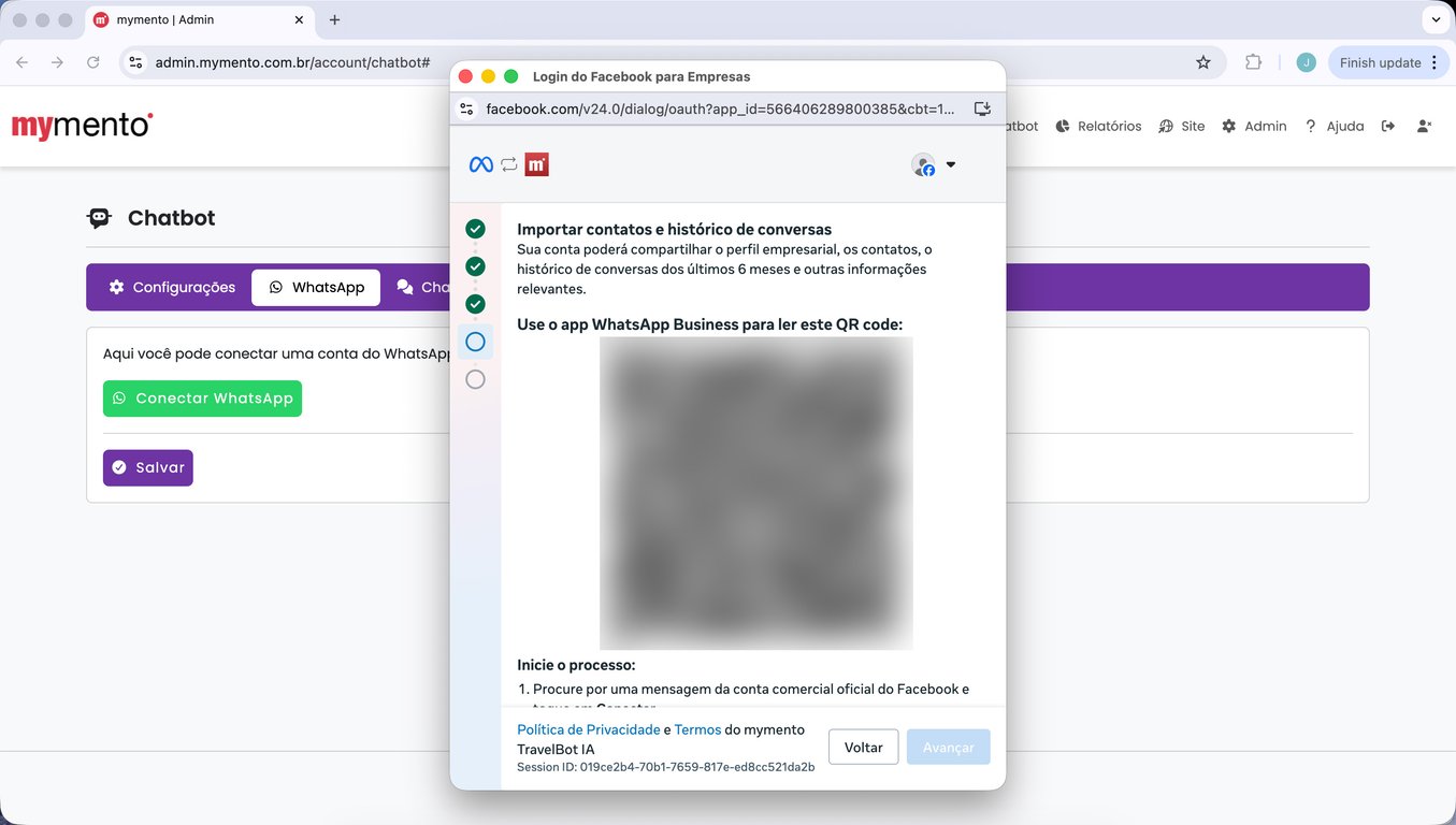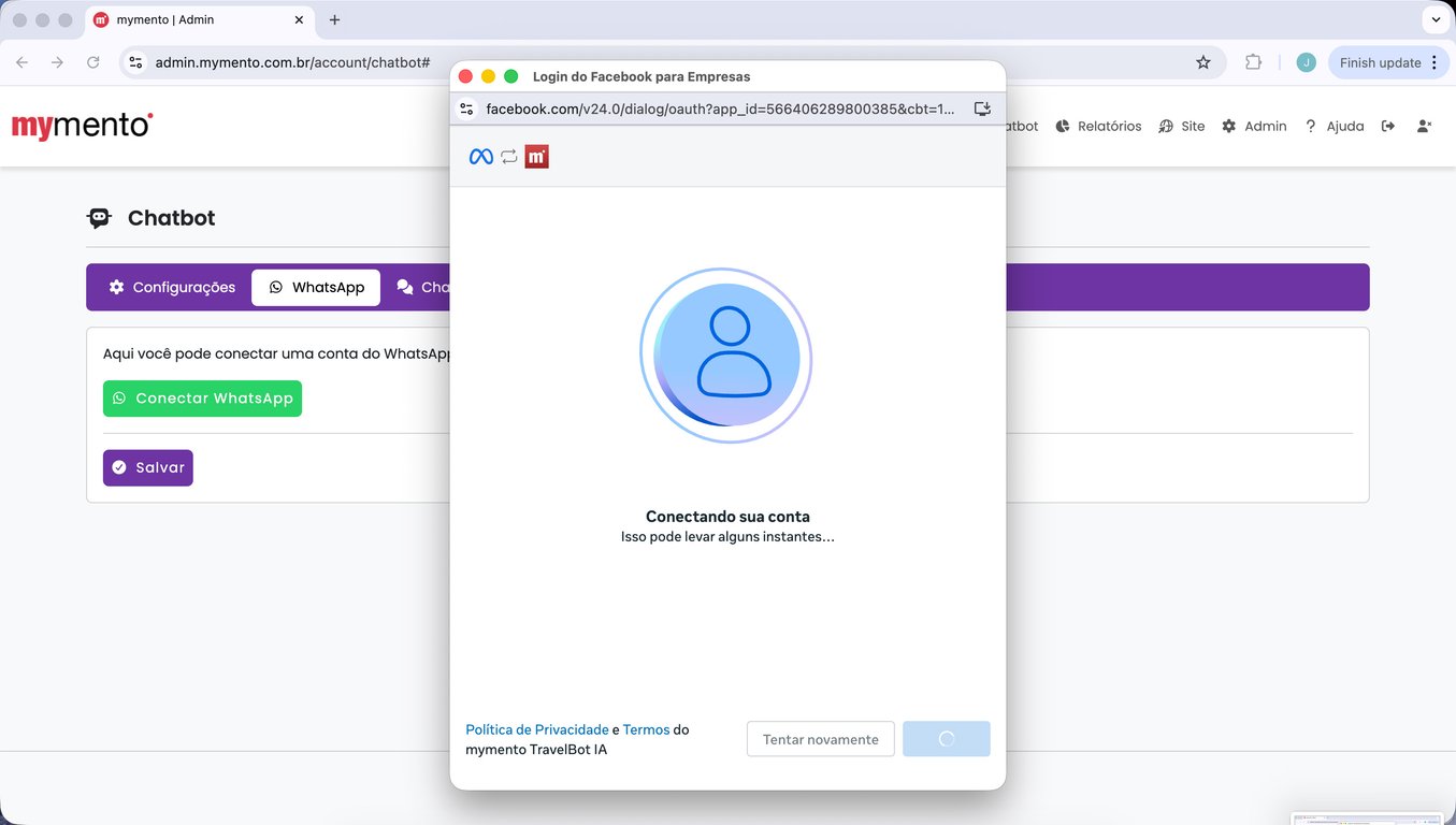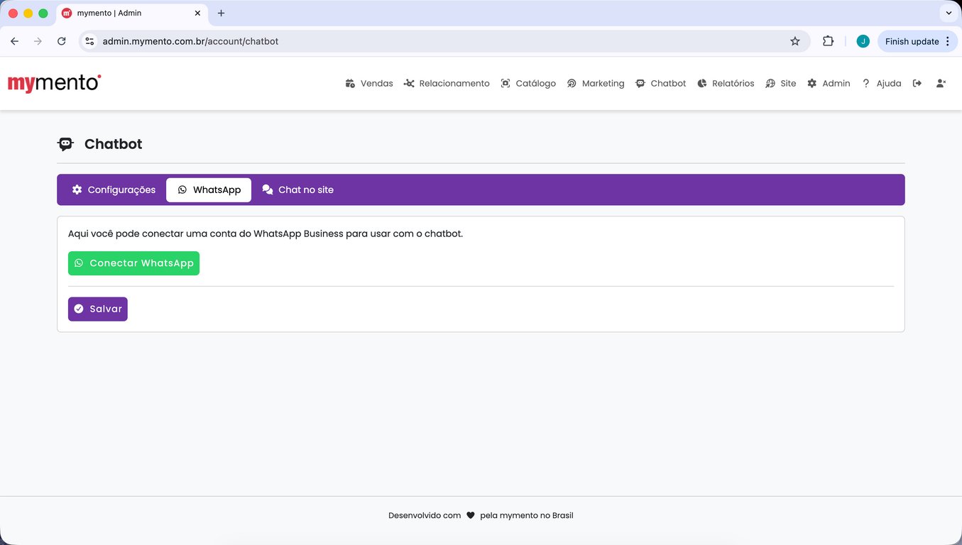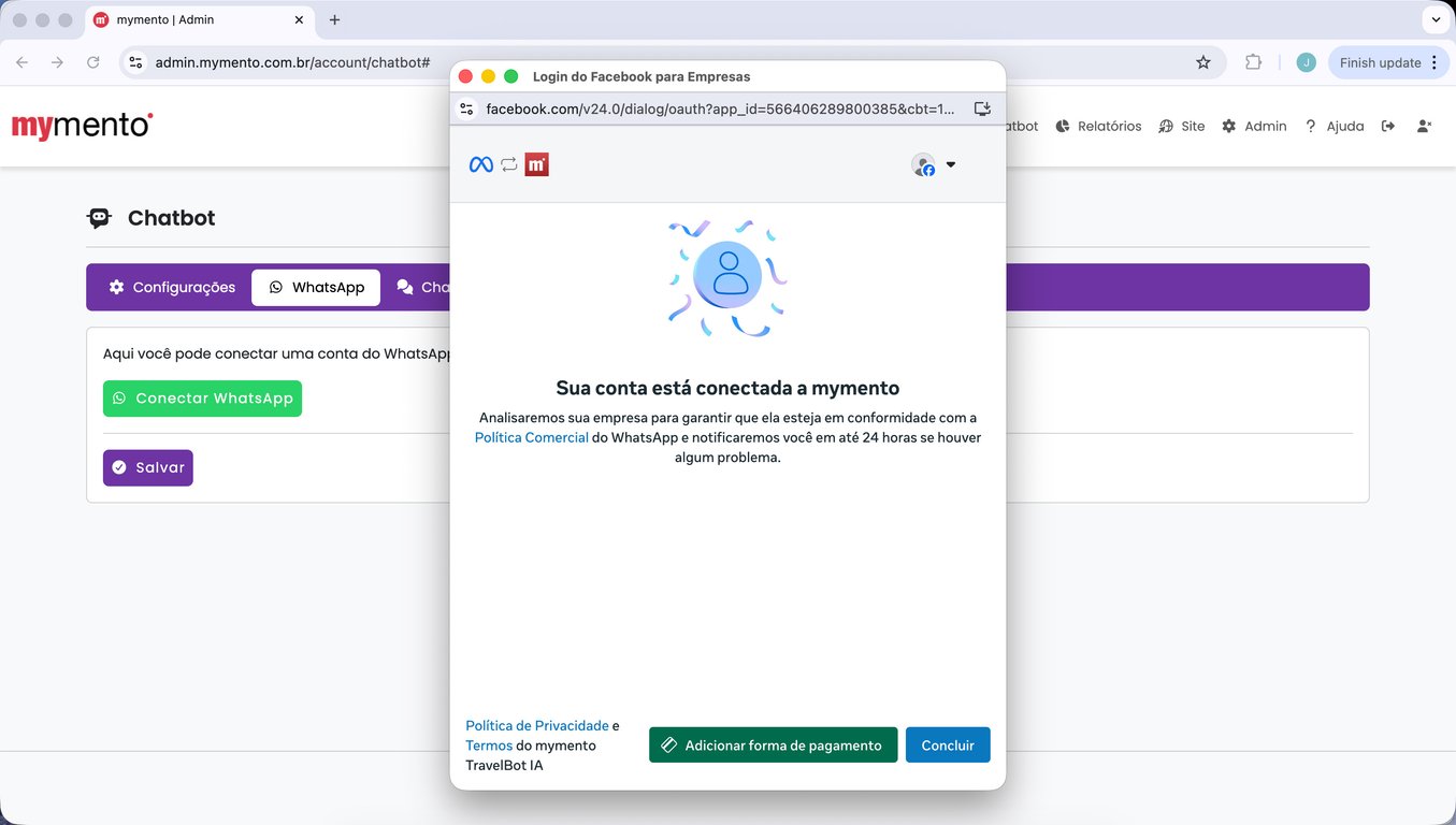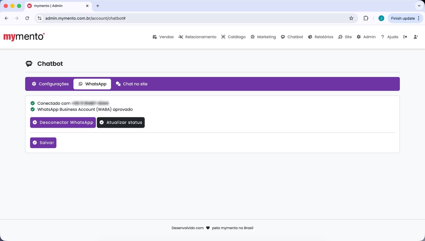 15) Espere alguns segundos até que a tela da mymento recarregue automaticamente. Sua conta do WhatsApp está conectada.