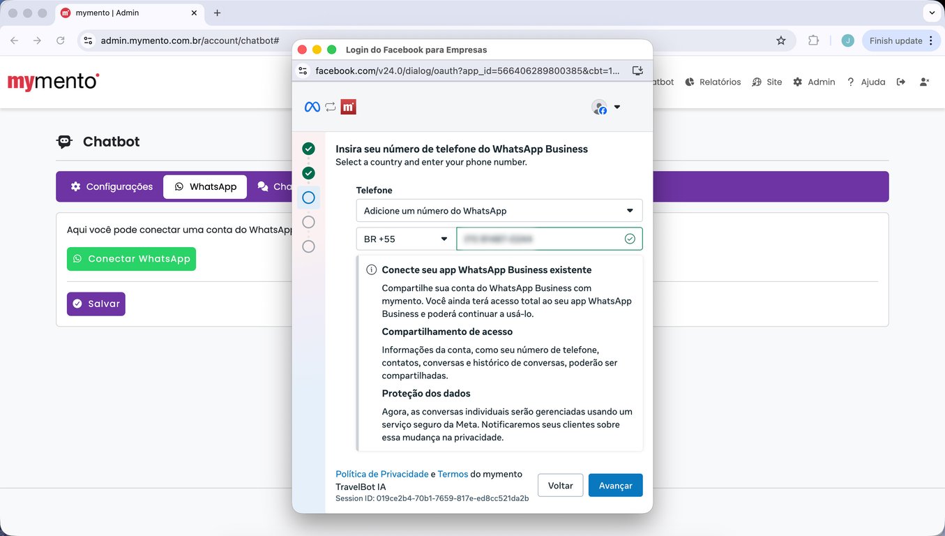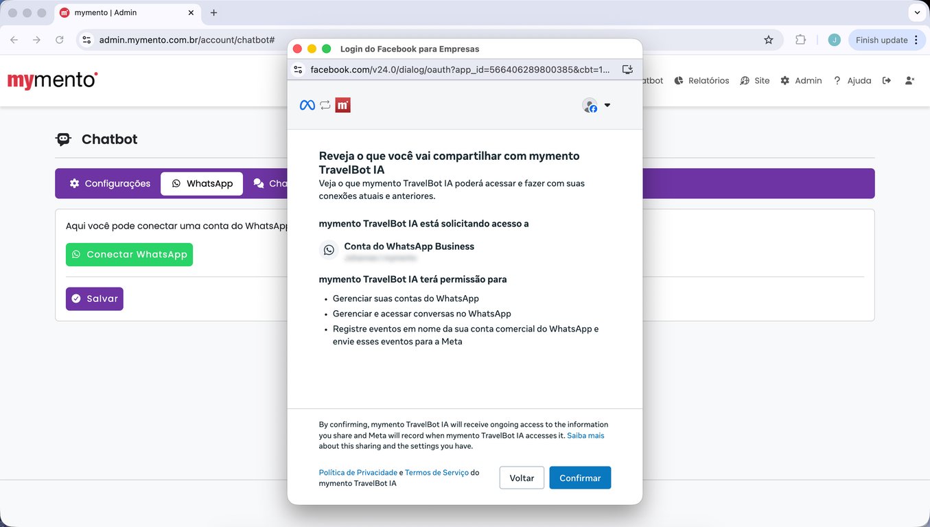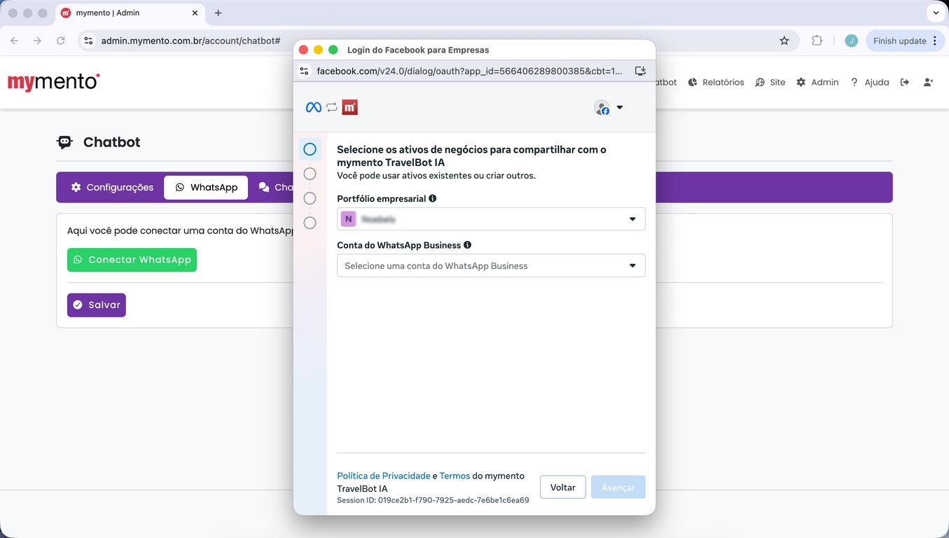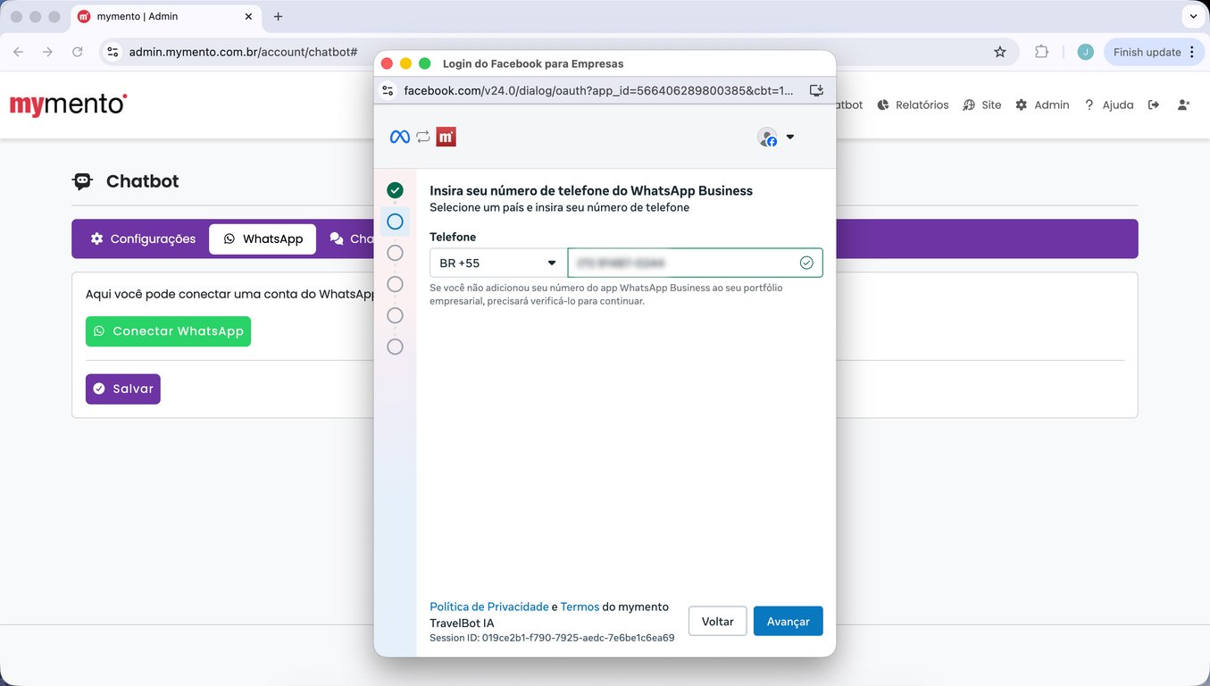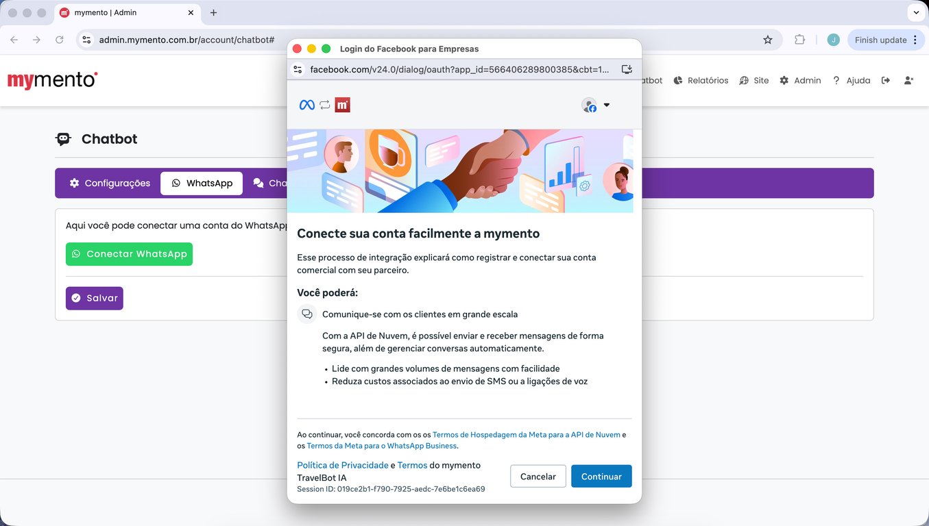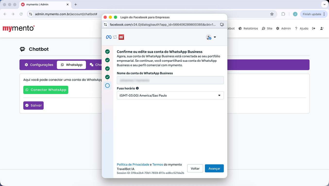 15) Espere alguns segundos até que a tela da mymento recarregue automaticamente. Sua conta do WhatsApp está conectada.