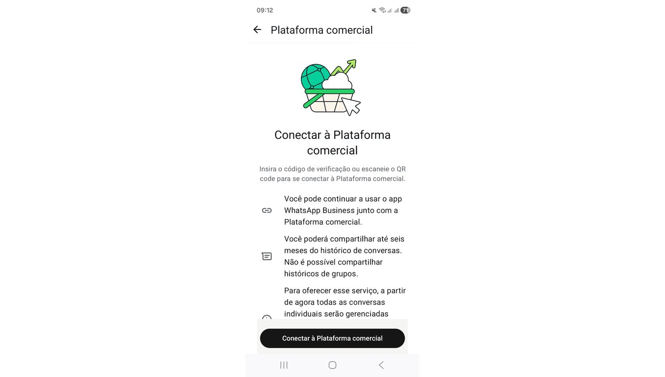 9) Leia as informações apresentadas nesta tela e clique em "Conectar à Plataforma comercial".